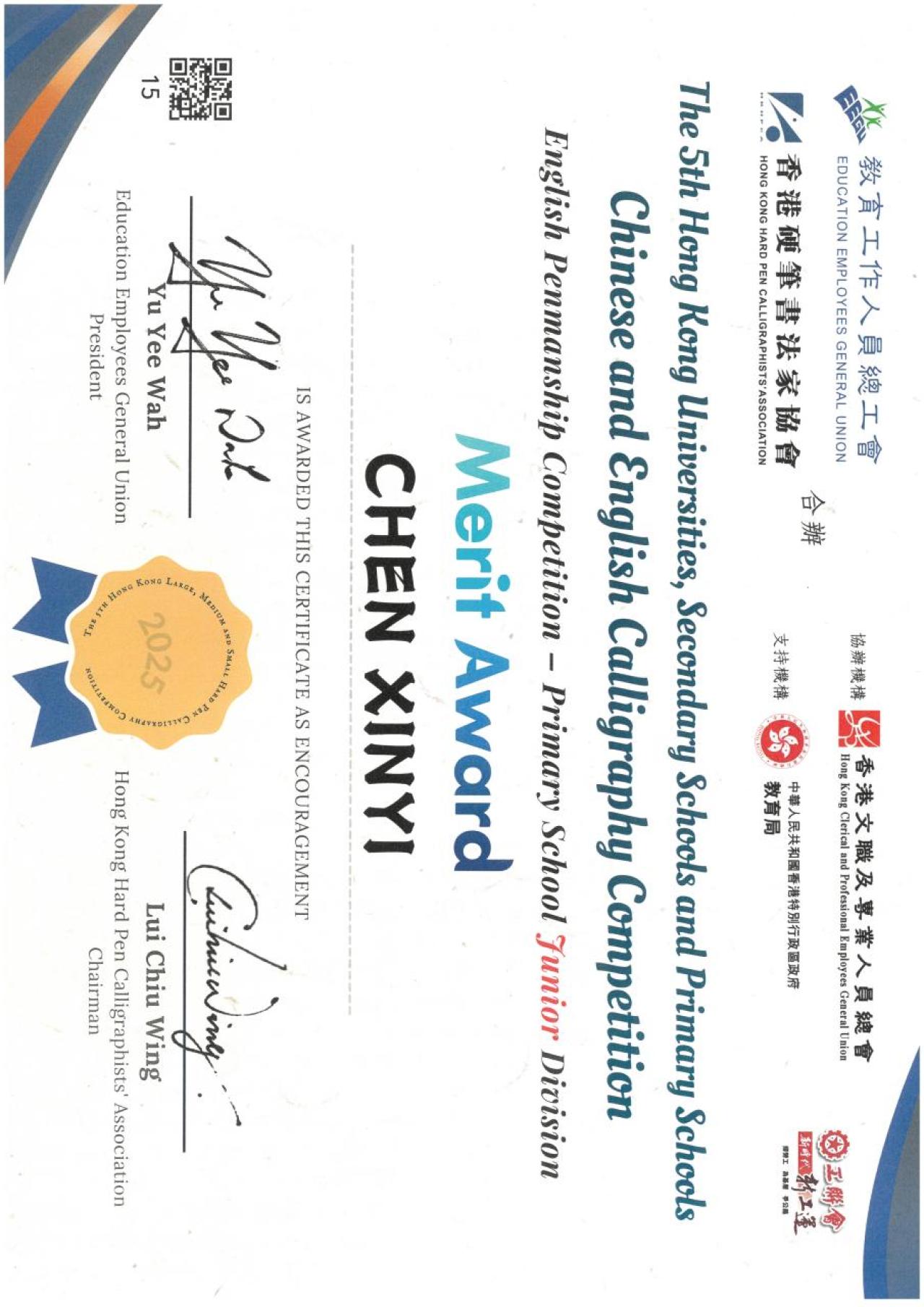 第五屆香港大中小學中英文硬筆書法比賽